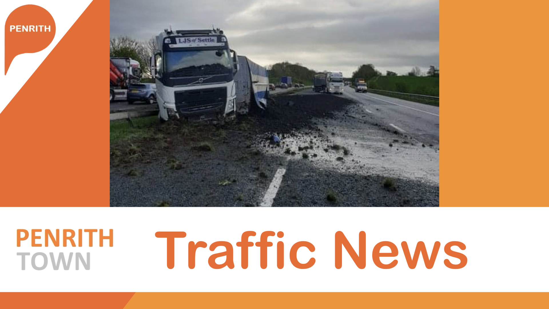 The M6 in Cumbria is closed northbound between J39 (Shap) and J40 (Penrith) due to a collision involving a heavy goods vehicle that has overturned and has come to rest on the central reservation barrier.
