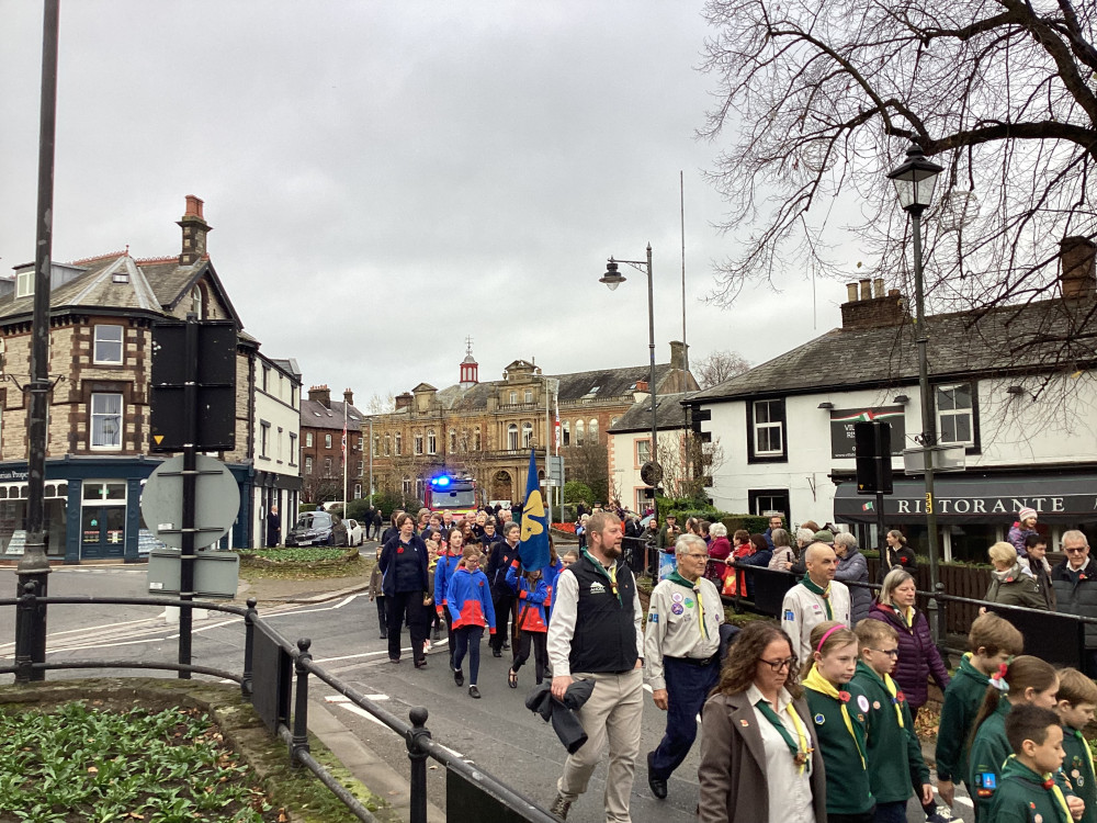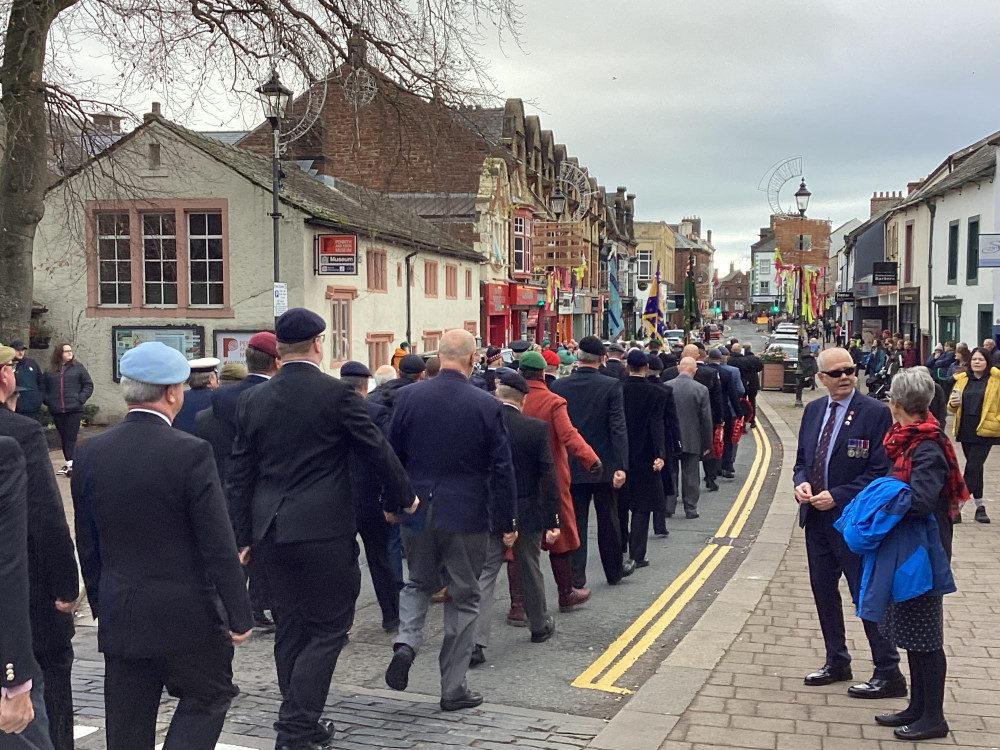 The annual Remembrance parade through Penrith took place on Sunday (10th November) afternoon with Penrith Town band leading the parade with members of the armed forces, emergency service, veterans along with members of the scouts and guides plus representatives from the council.