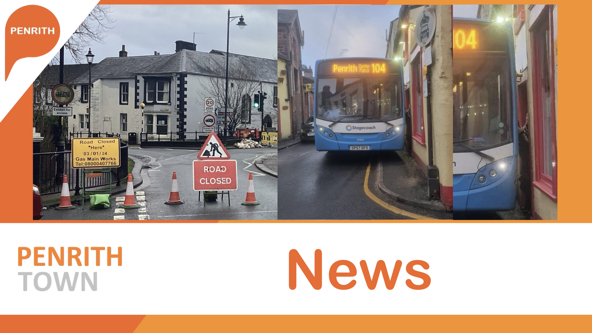 Stagecoach has said “The 104 service inbound to Penrith from Carlisle will turn left onto Portland Place, and then turn right onto Meeting House Lane. The service will then turn right into Penrith Bus Station as normal. The bus stops that will be missed out are Town hall and Middlegate. From Penrith Bus Station to Center Parcs, the 104 service will operate as normal.”