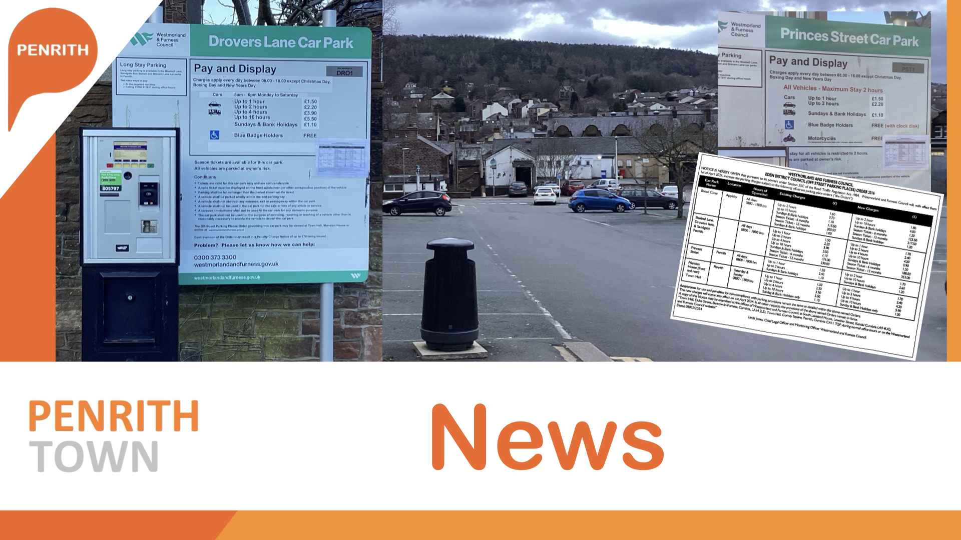But one carpark is according to the official notice issued by the Westmorland and Furness Legal and Monitoring officer on the 8th of March undergoing a change with lower parking charges and longer parking times available.