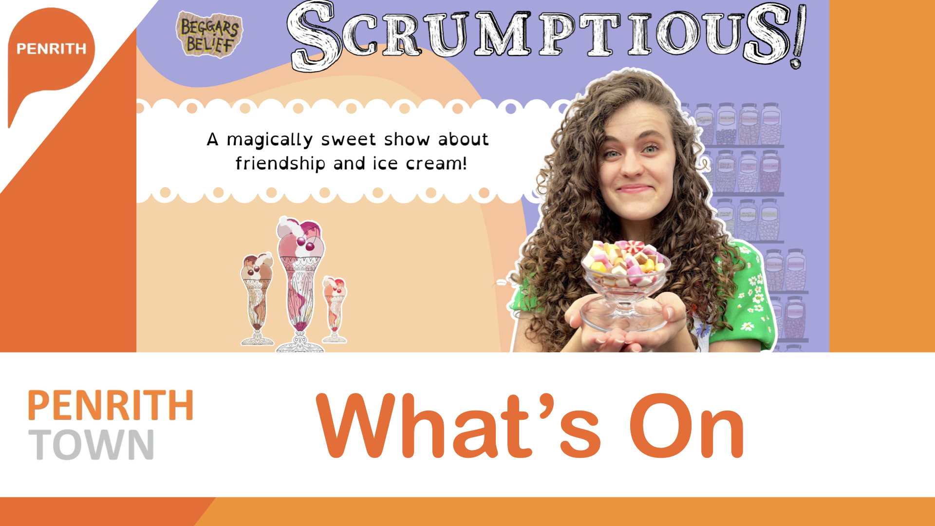 SCRUMPTIOUS! is a magical show about friendship and ice cream. It features hilarious songs, dancing, storytelling, and gentle audience participation. It has been described as “the perfect treat for children aged four and above - and their grown ups!”