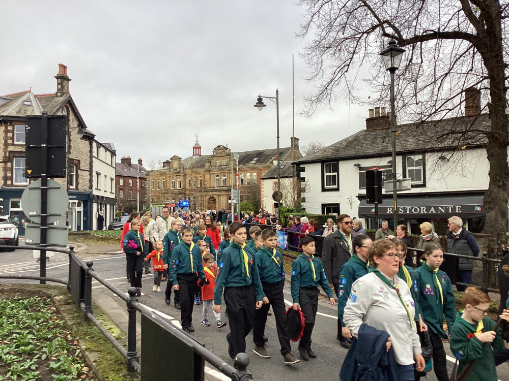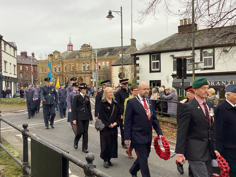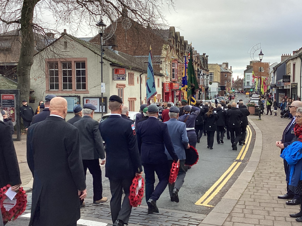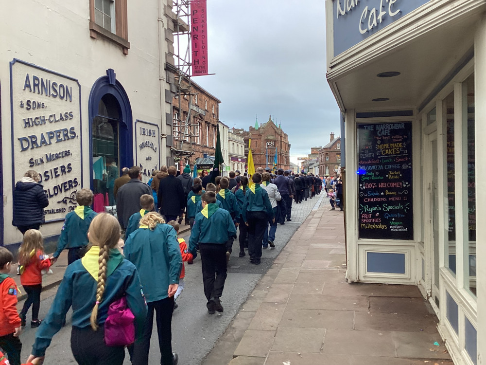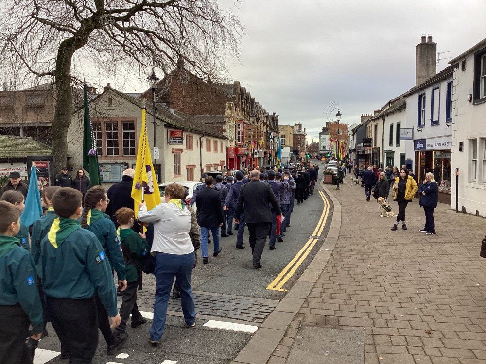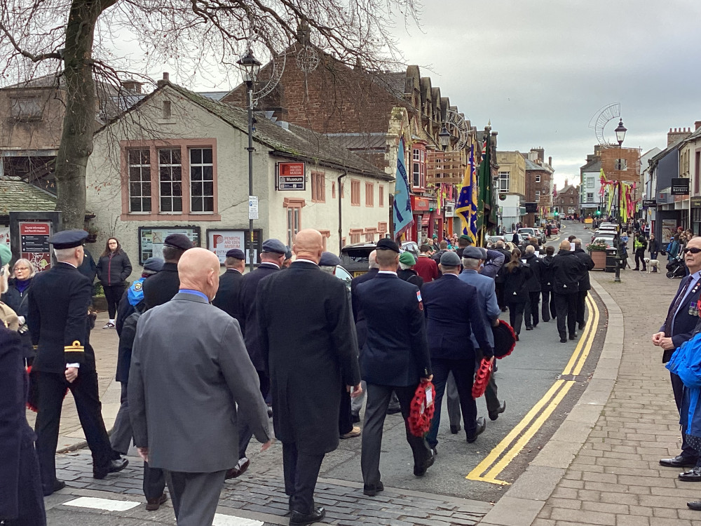 The annual Remembrance parade through Penrith took place on Sunday (10th November) afternoon with Penrith Town band leading the parade with members of the armed forces, emergency service, veterans along with members of the scouts and guides plus representatives from the council.