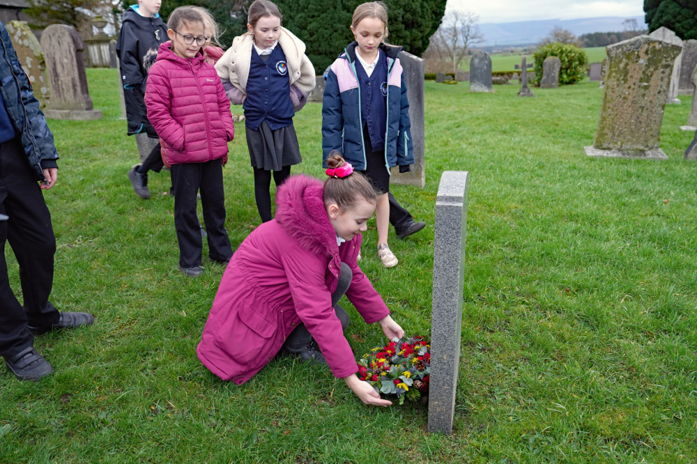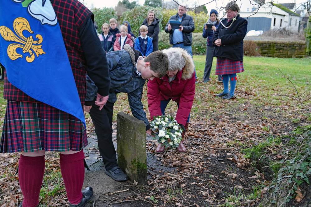 There, they were joined by Clifton Primary School pupils and the chair of Clifton Community Council. The ceremony included wreath-laying at both burial sites to remember those who gave their lives in a battle that shaped the course of British history.